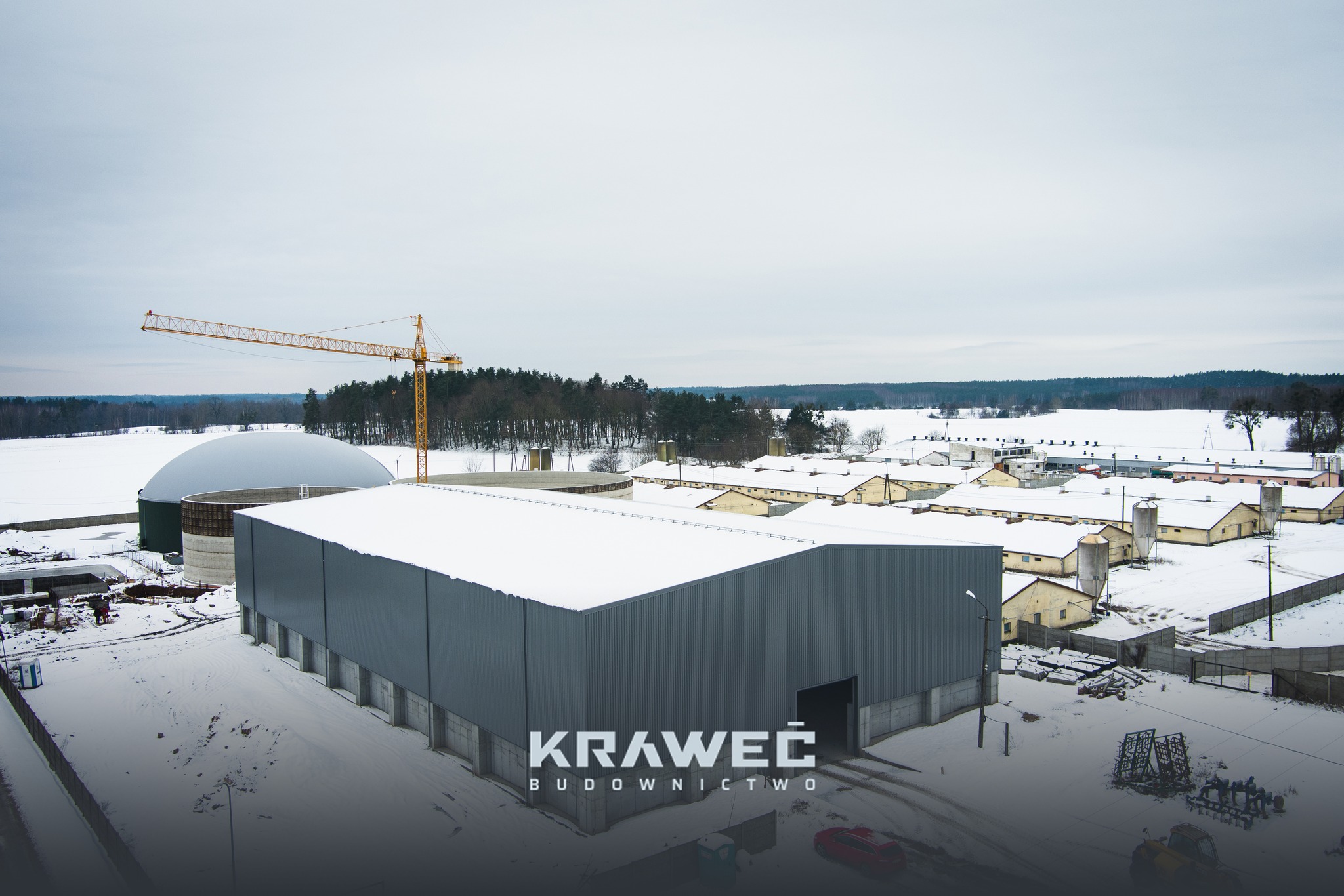 Firma Kraweć Budownictwo jako generalny wykonawca realizuje kompleksową budowę nowoczesnej hali magazynowej na zboże w zabudowie zagrodowej w Zawrotach