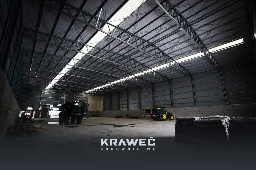 We wnętrzu obiektu wykonaliśmy posadzkę żelbetową oraz przygotowujemy dokumentację odbiorową hali. Jesteśmy również odpowiedzialni za uzyskanie pozwolenia na użytkowanie obiektu, co stanowi ostatni etap naszej współpracy w ramach tej inwestycji.