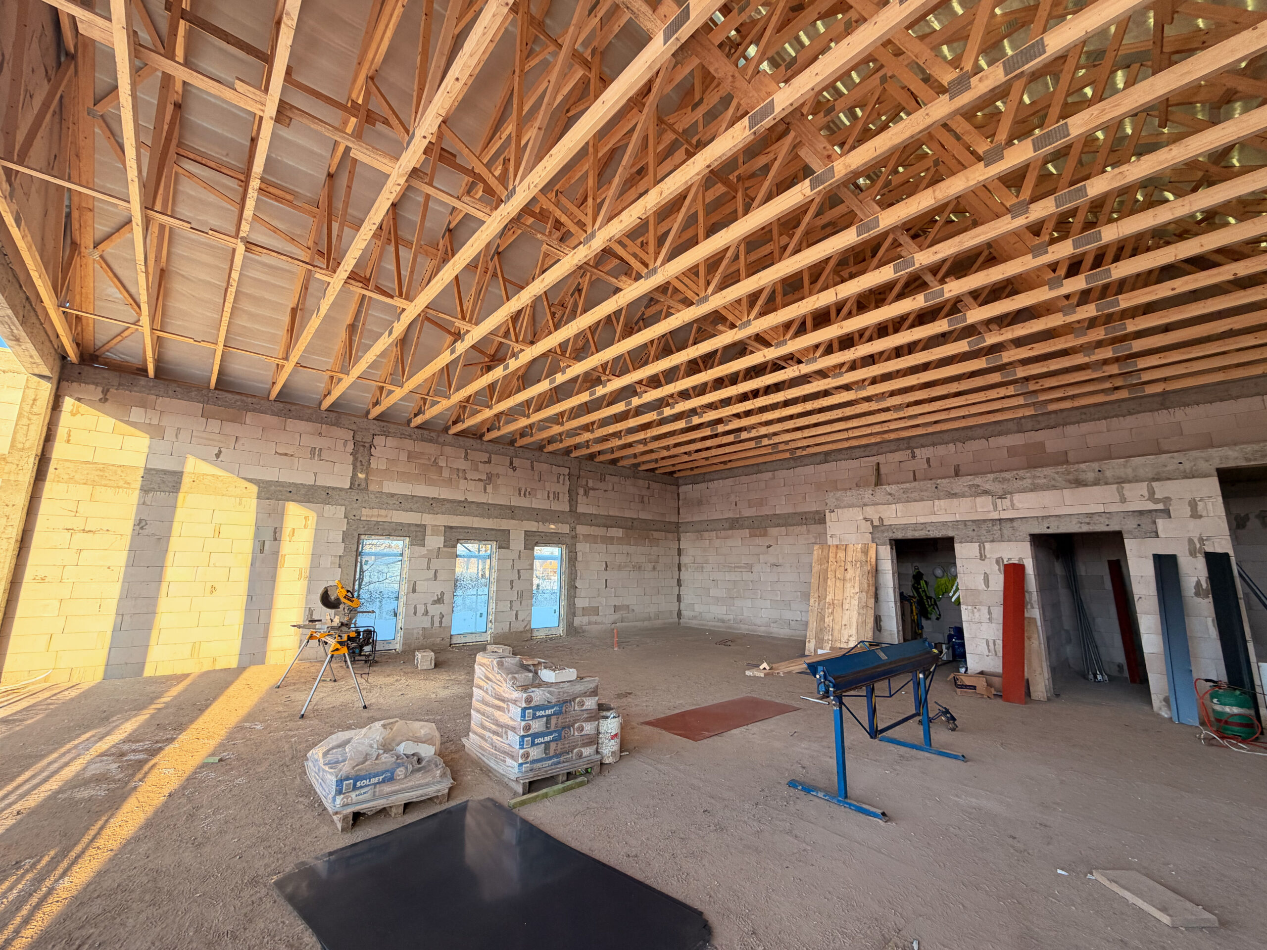 Zakres inwestycji obejmuje kompleksową realizację robót budowlanych i instalacyjnych, w tym wykonanie konstrukcji obiektu, instalacji sanitarnych, grzewczych, wentylacyjnych oraz elektrycznych. Równolegle realizowane jest zagospodarowanie terenu, obejmujące wykonanie utwardzeń oraz parkingów – oddzielnie dla wozów bojowych oraz użytkowników części kulturalnej.