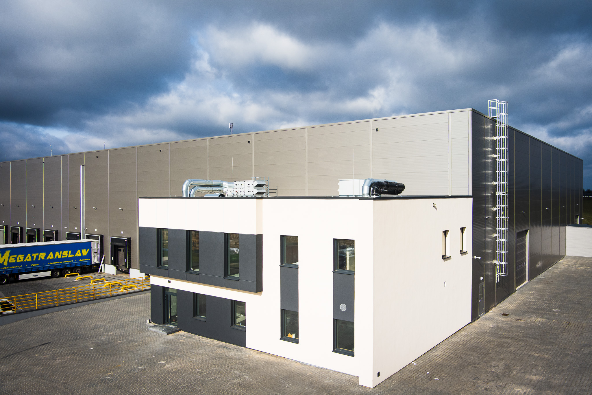 Rozbudowa istniejacej hali wysokiego składowania o część produkcyjno-magazynową oraz o część socjalną wraz z niezbędną infrastrukturą towarzyszącą. Przed rozpoczęciem prac fundamentowych wykonano wymianę gruntu pod całą powierzchnię inwestycji. Wykonano fundamenty, posadzkę przemysłową. Zamontowano prefabrykowaną ścianę oddzielenia pożarowego o wysokości 14m i długości 60m.